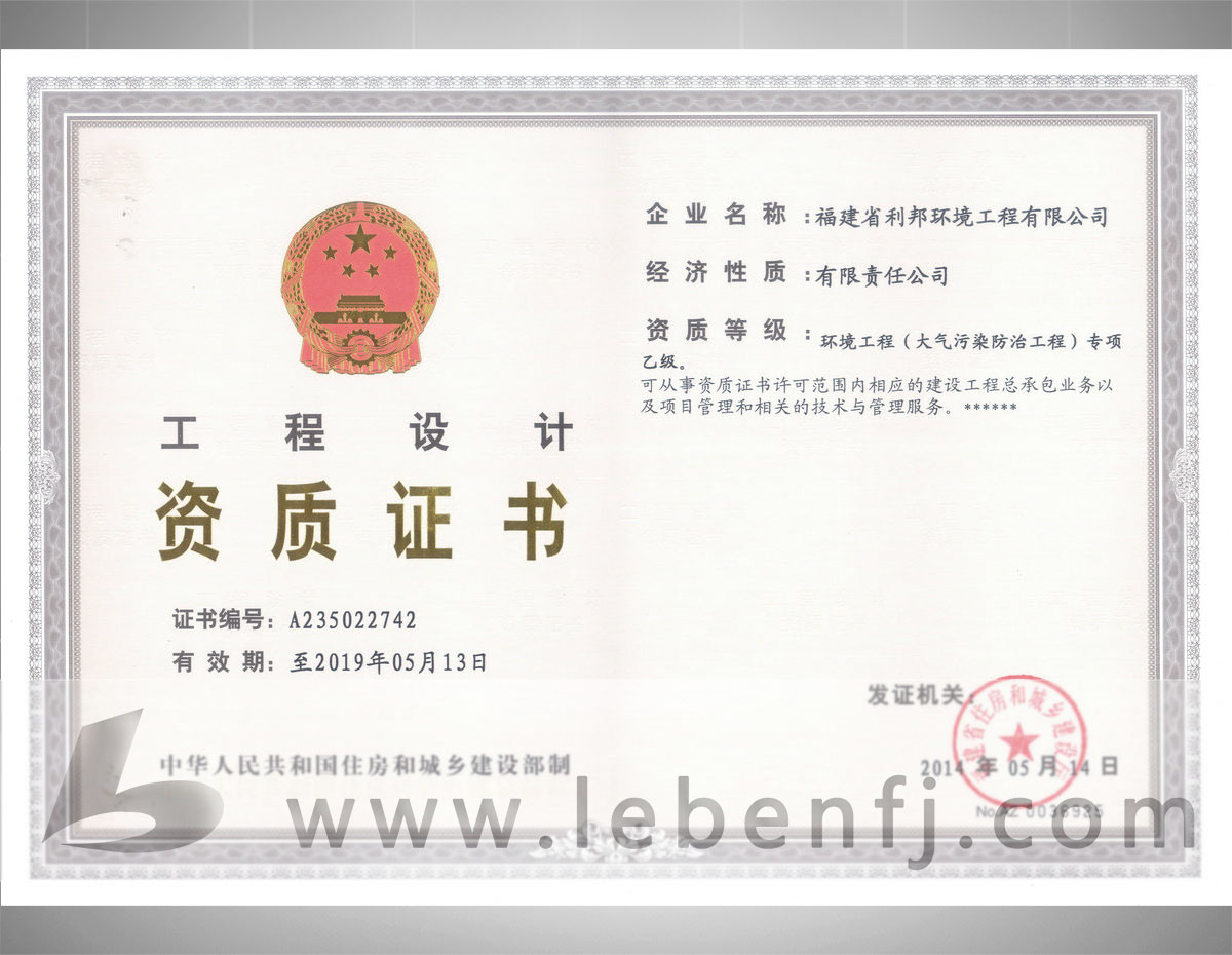 環(huán)境工程設(shè)計(jì)專項(xiàng)資質(zhì)(乙級)
